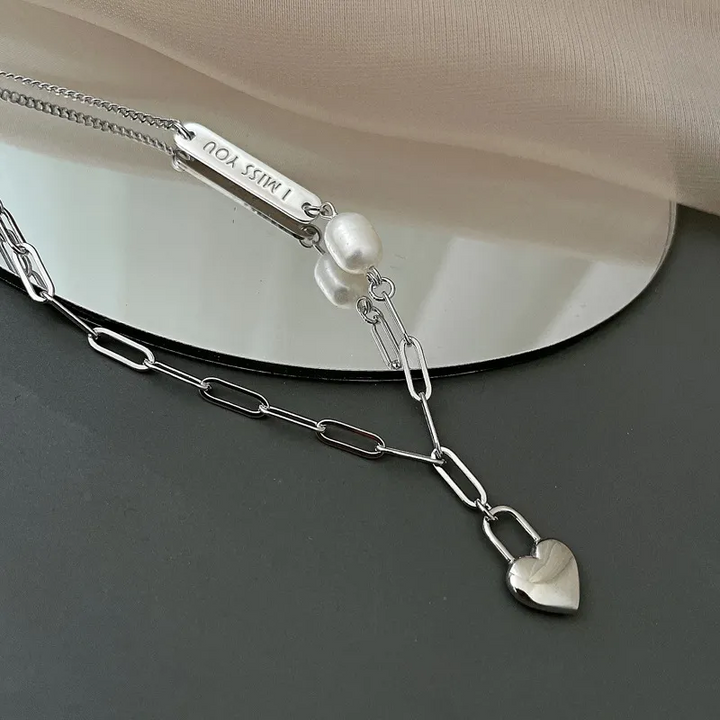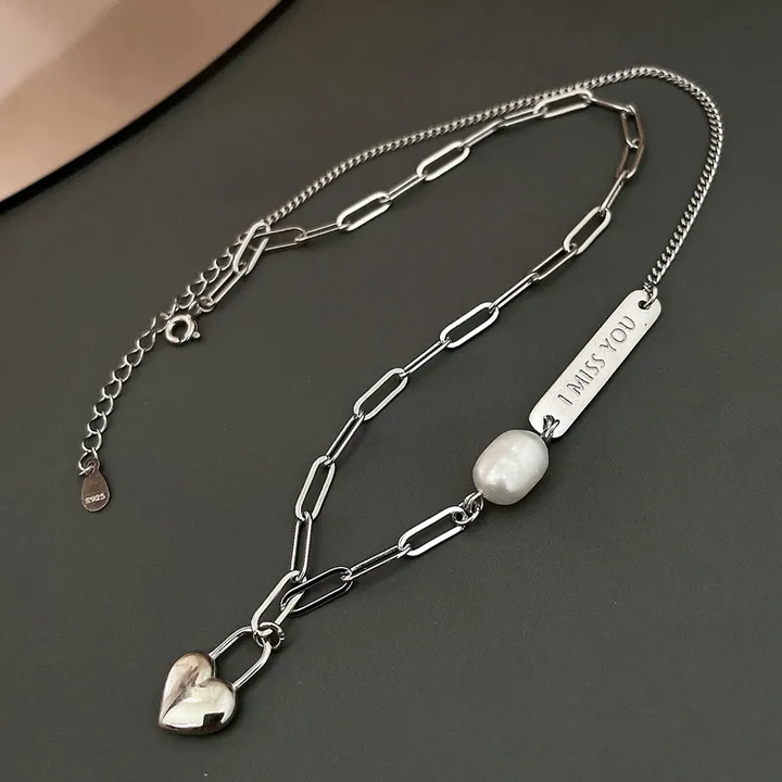 Halskette Herz Sterling Silber 925 ich vermisse dich Damen Mädchen Kette Liebe