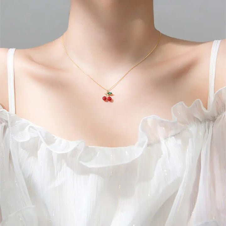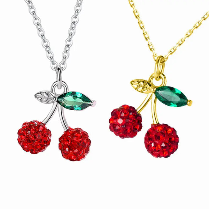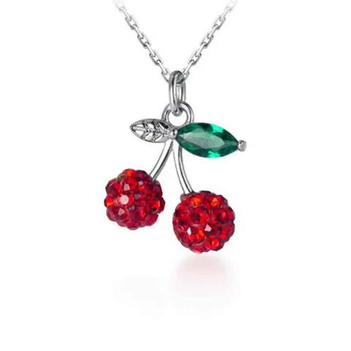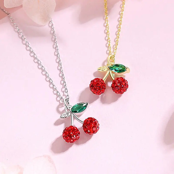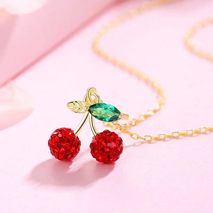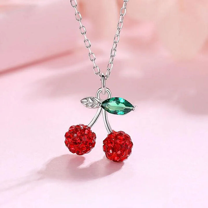 Halskette mit Anhänger Kirsche Sterling Silber 925 Rot, Zirkonia Mädchen Kette