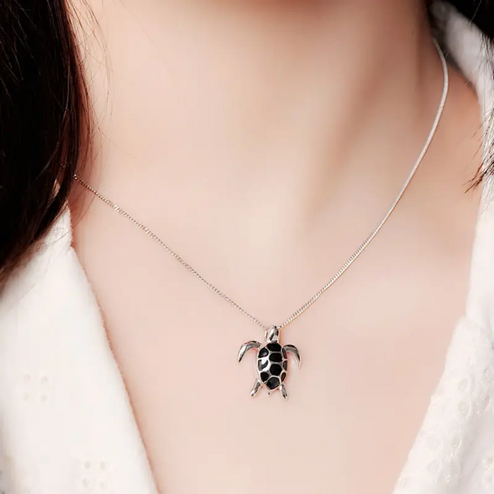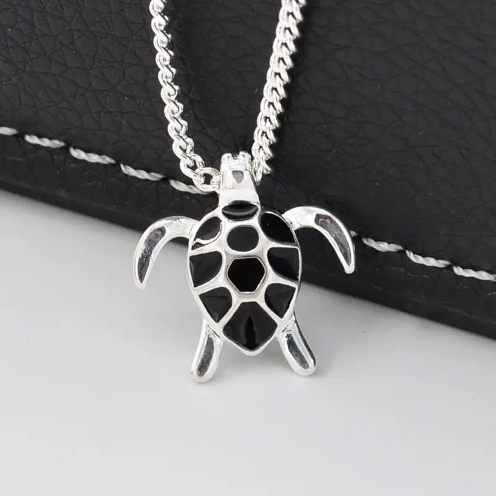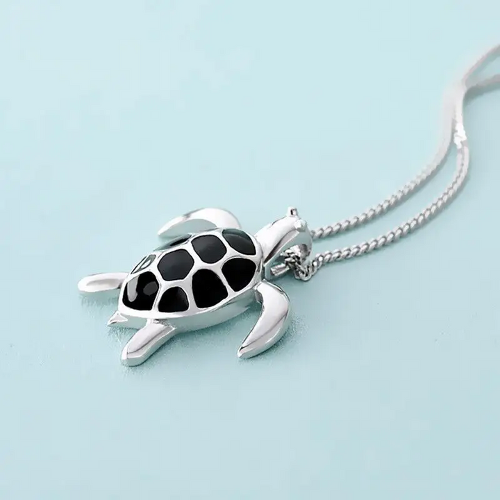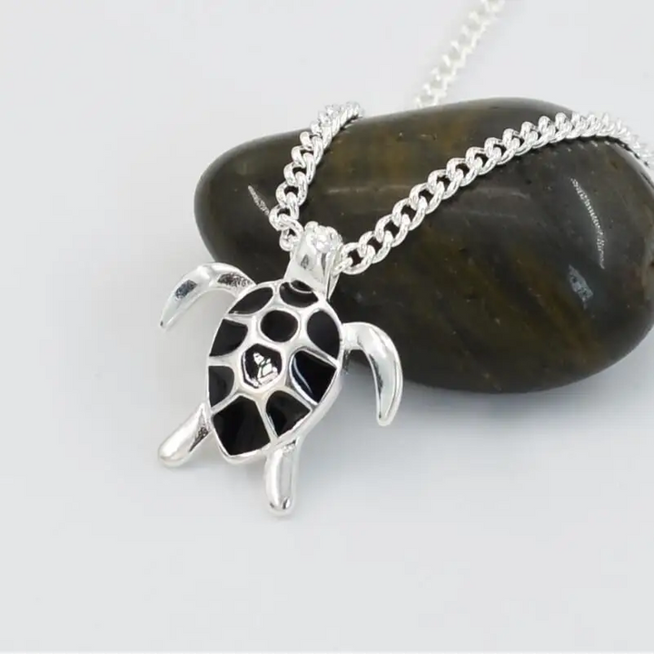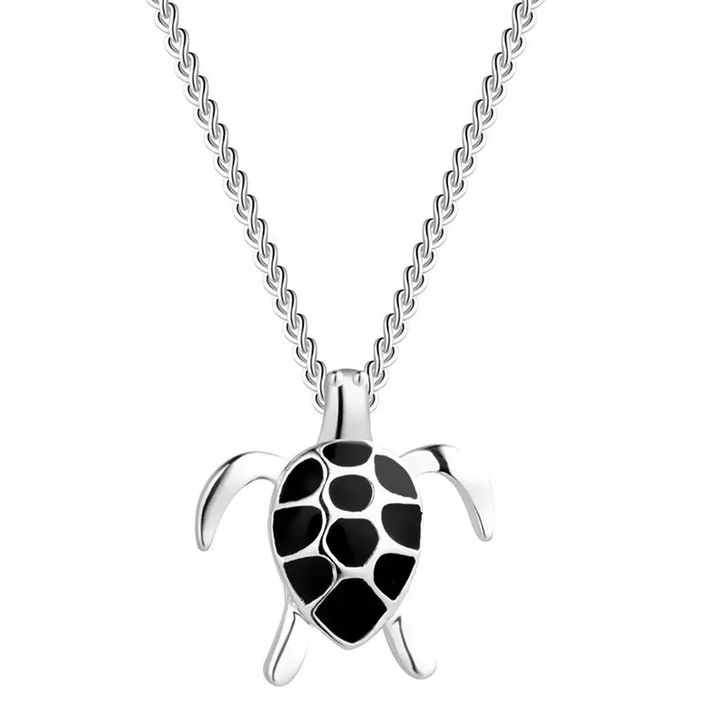 Halskette mit Anhänger Schildkröte Sterlingsilber 925 Weiß - Schwarz