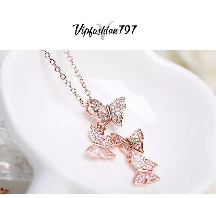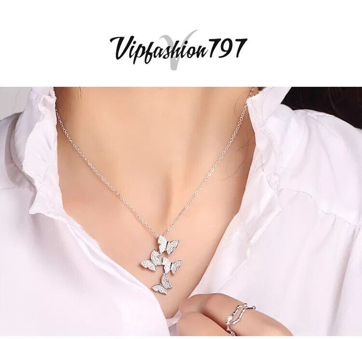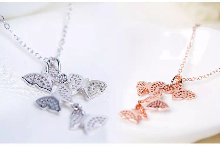 Halskette mit Anhänger Schmetterlinge Sterlingsilber 925 mit Zirkonia
