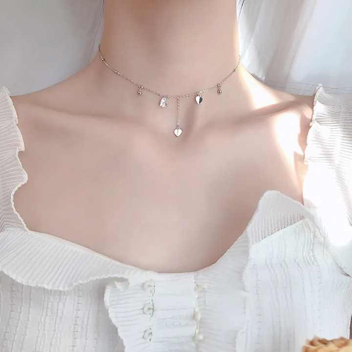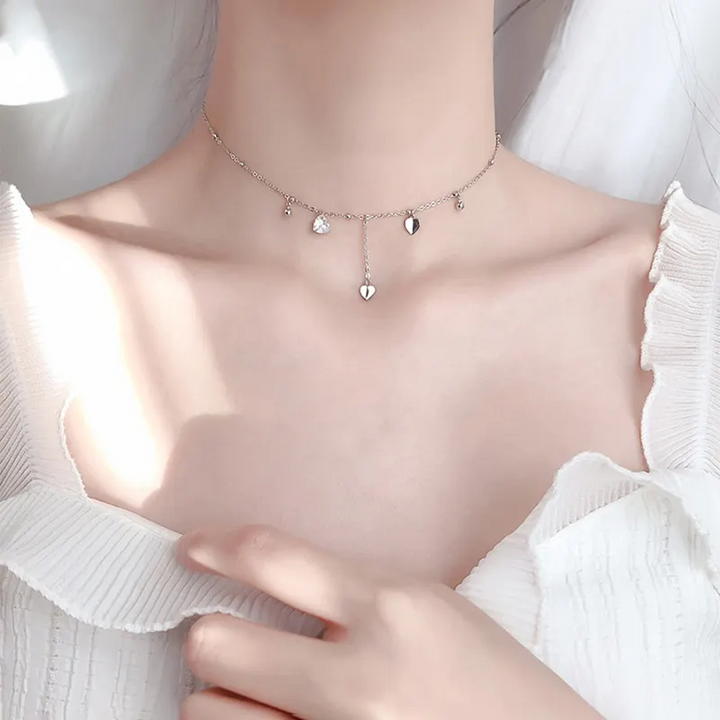 Halskette mit Anhängern - Mini Herzen echt Sterling Silber 925, Zikronia