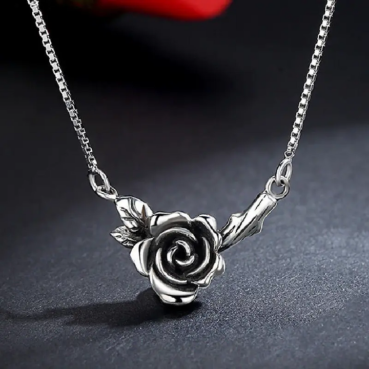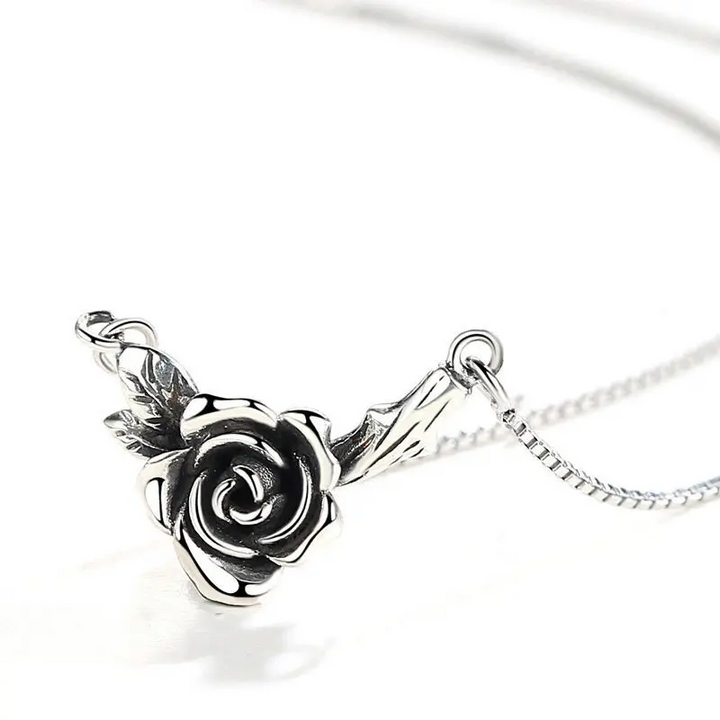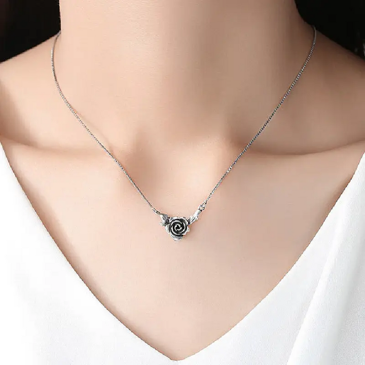 Halskette mit Blumen Sterling Silber 925 Geschwärzt Damen Mädchen Kette