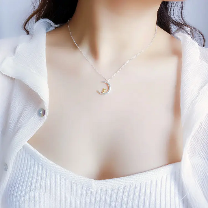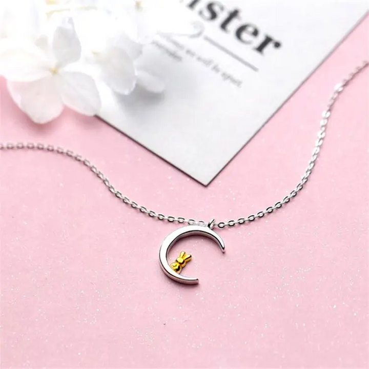 Halskette Mond Sterling Silber 925 Damen Mädchen Kinder Katze kette,Geschenk