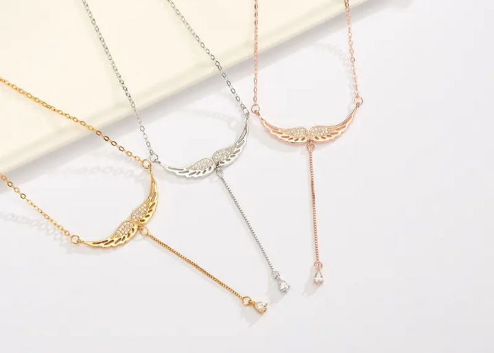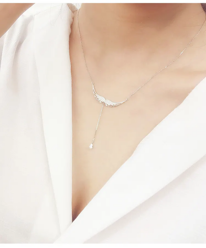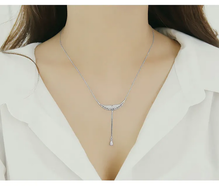 Engelsflügel Halskette Silber 925 mit Anhänger – Damenkette mit Federringverschluss, 44 cm