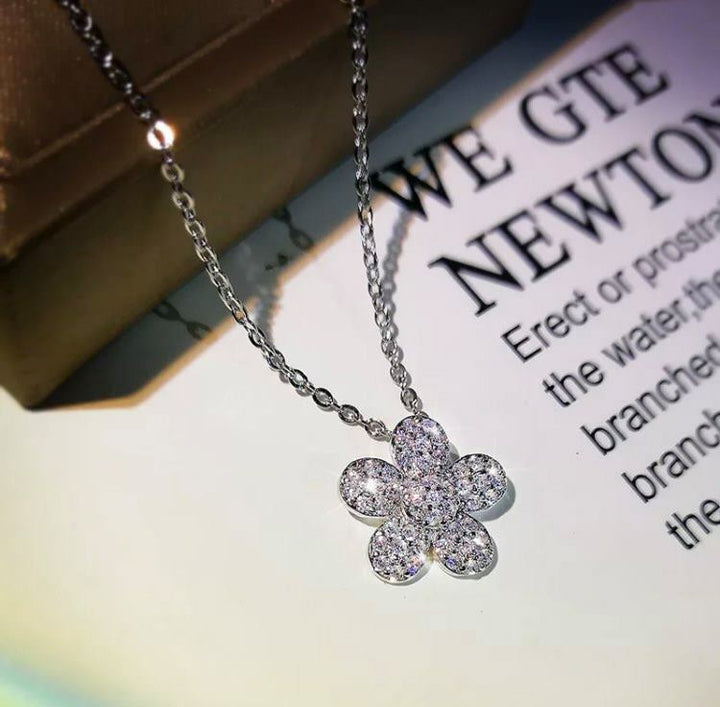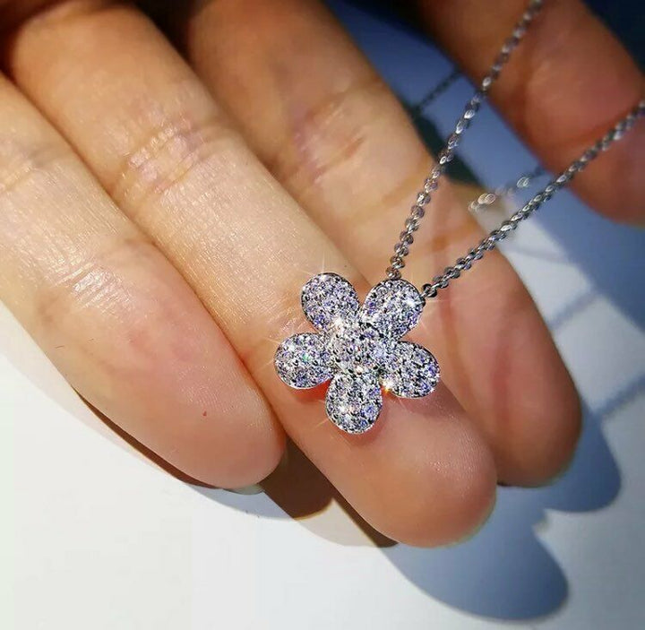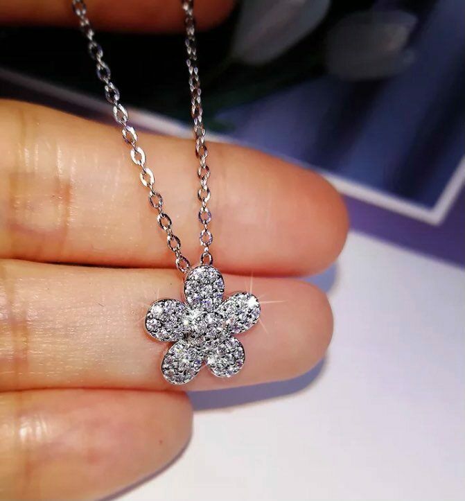 Halskette Sterlingsilber 925 Damen Mädchen Anhänger Blumen mit Zirkon