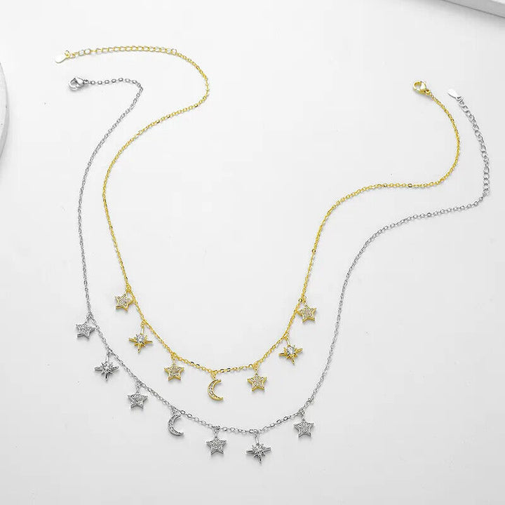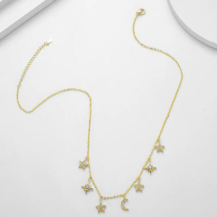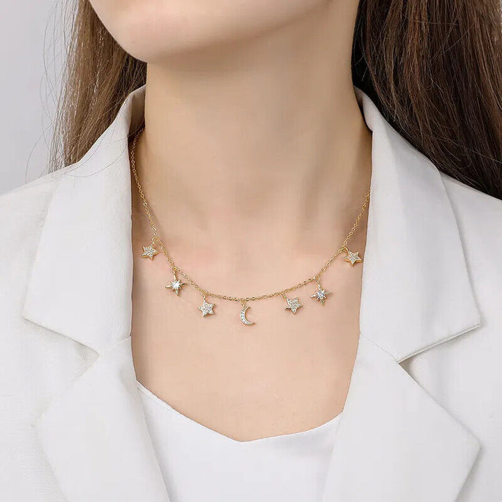 Halskette Sterne-Mond Damen Collier Sterlingsilber 925