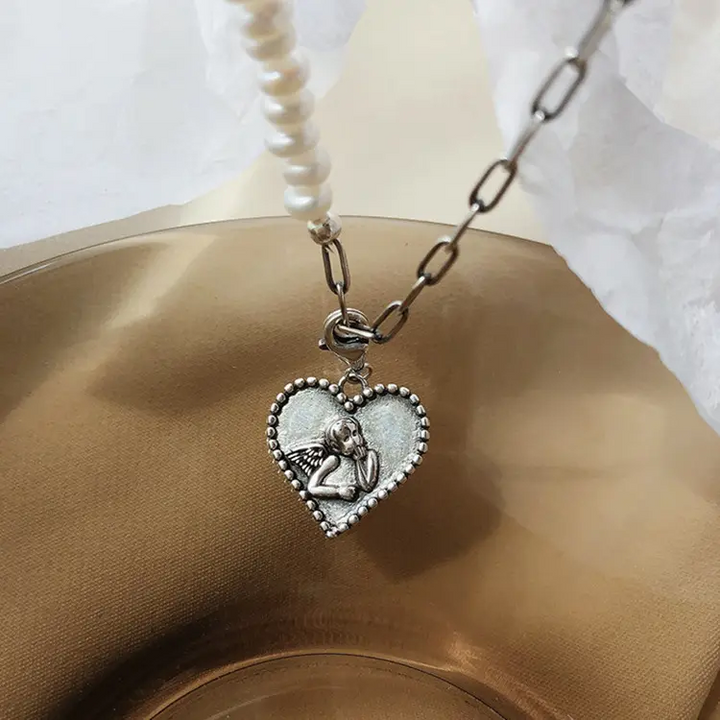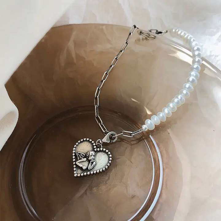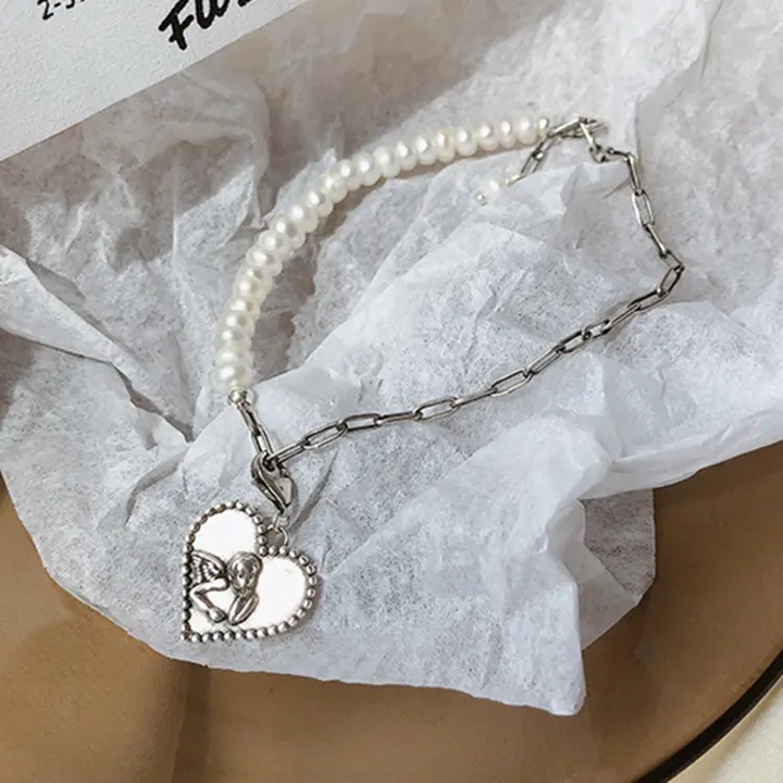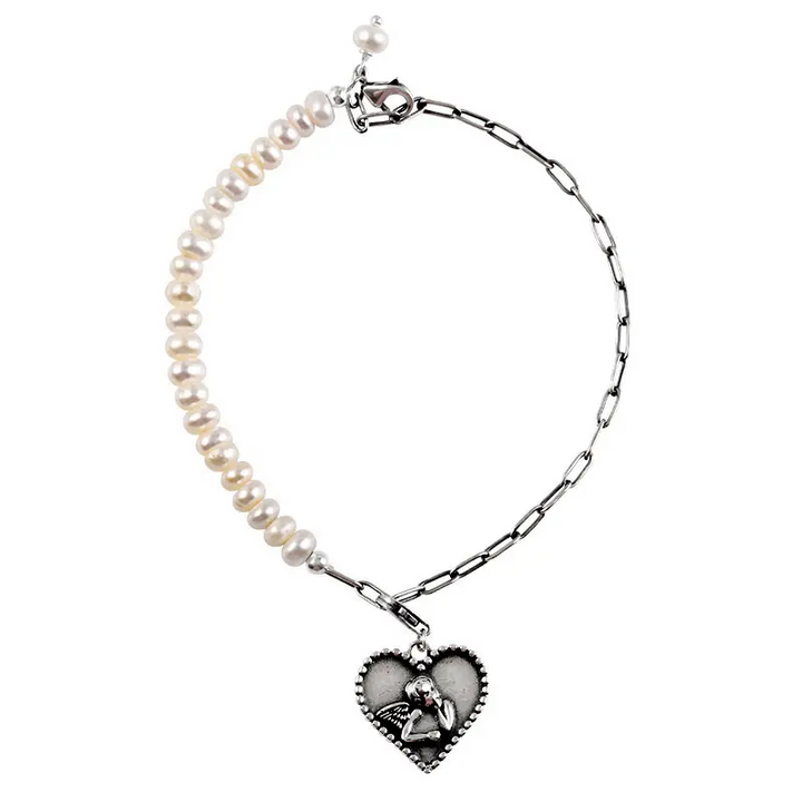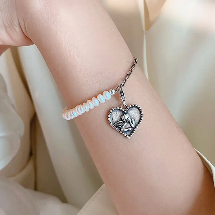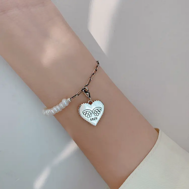 Herz Armband Engel- Perle Silber 925 Damen Armkette 21 cm
