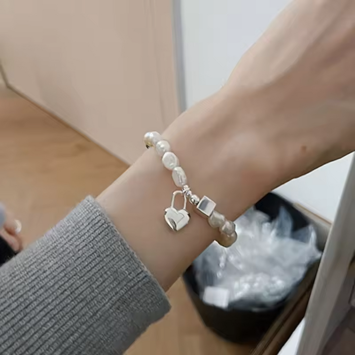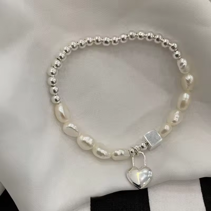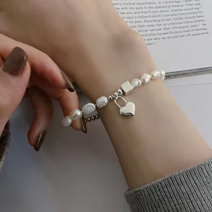 Herz Armband Natürliche perle echt Silber 925 Damen Armkette