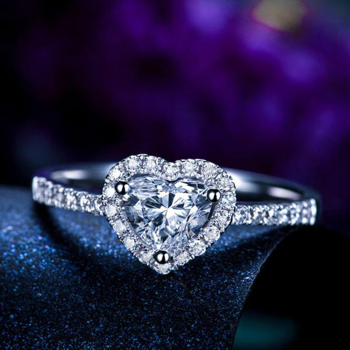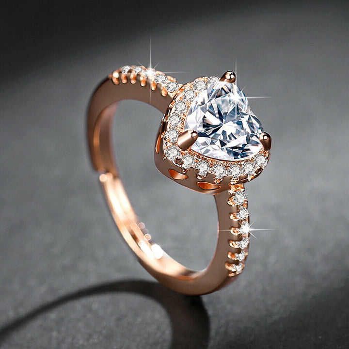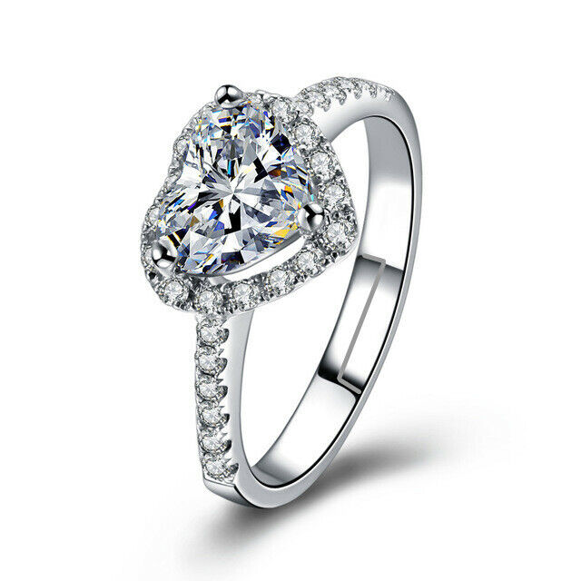Herz Ring Platiniert mit Zirkon einstellbar 53-59.