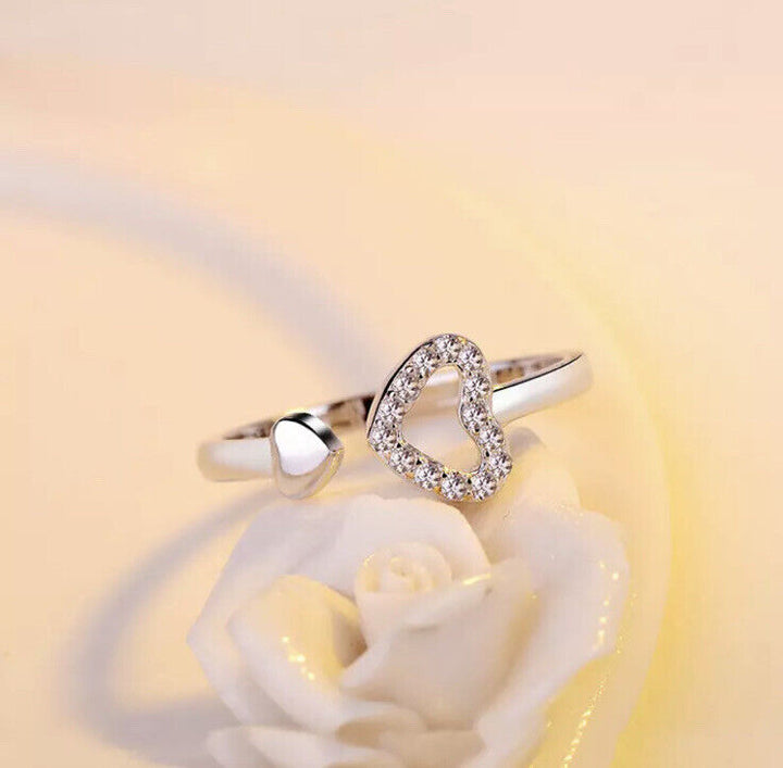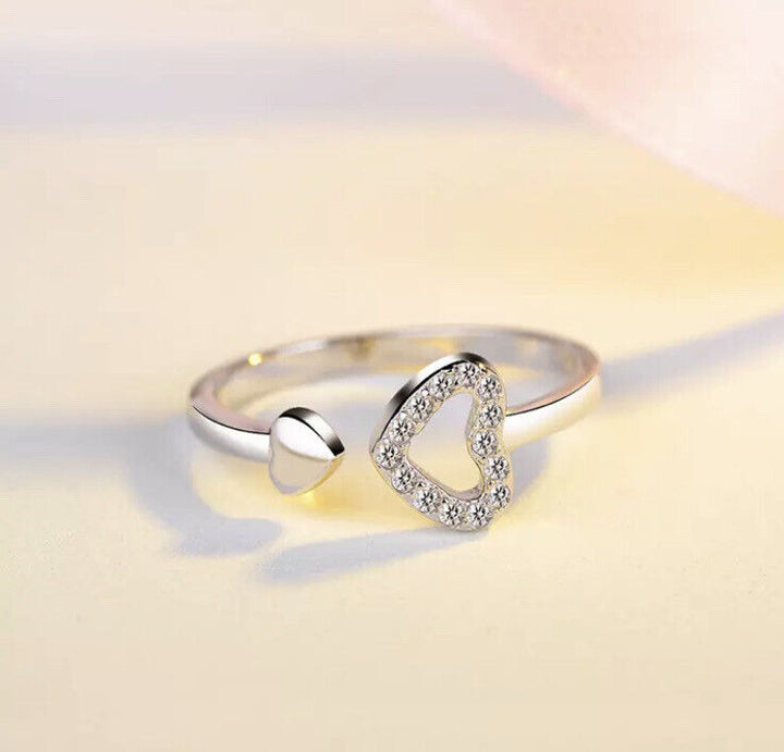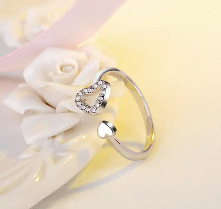 Herz Ring Silber 925 Größenverstellbar 54-56 mit Zirkonia Damenring