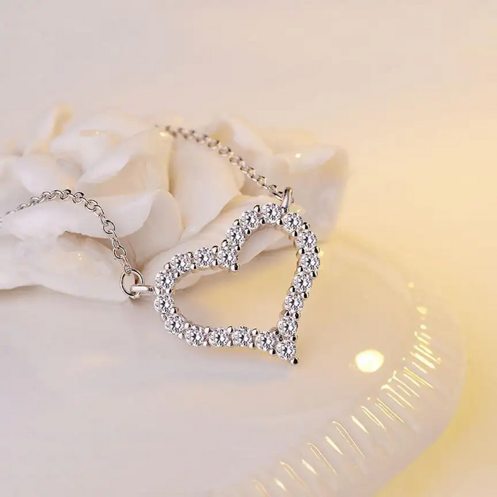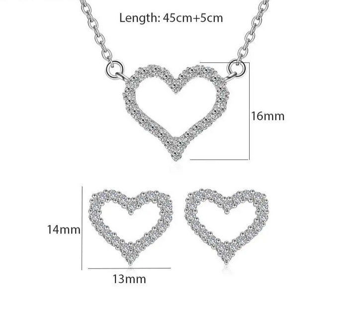 Herz-Schmuckset mit Zirkonia – Silber 925 Halskette & Ohrringe in Silberoptik