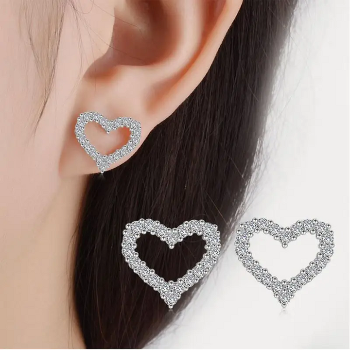 Herz-Schmuckset mit Zirkonia - Silber 925 Halskette & Ohrringe in Silberoptik