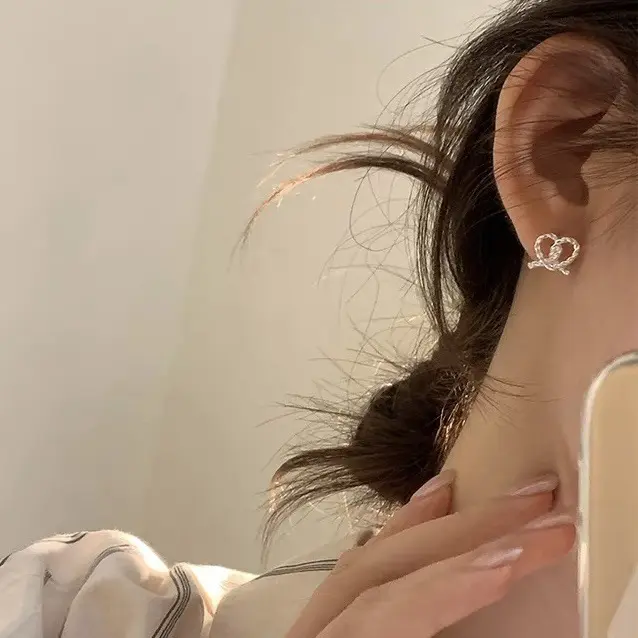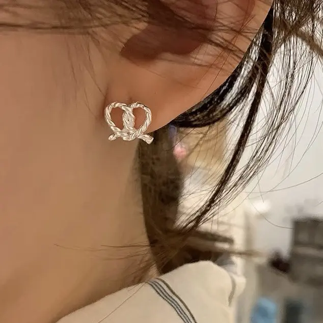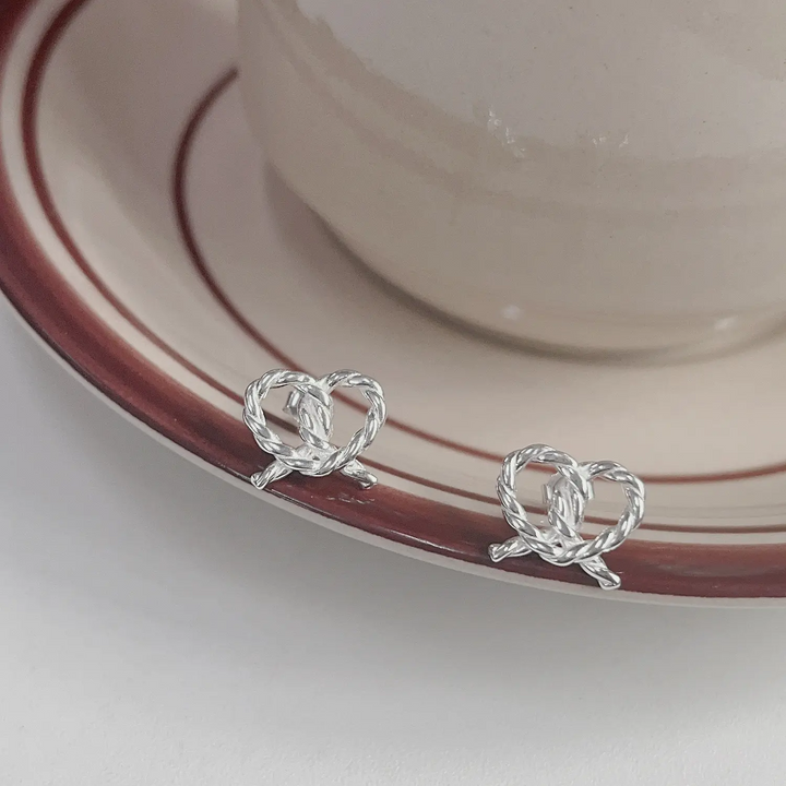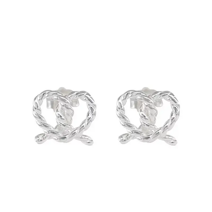Herz Silbern Ohrstecker – Brezel-Design, verspielt & modern Mädchen Ohrringe
