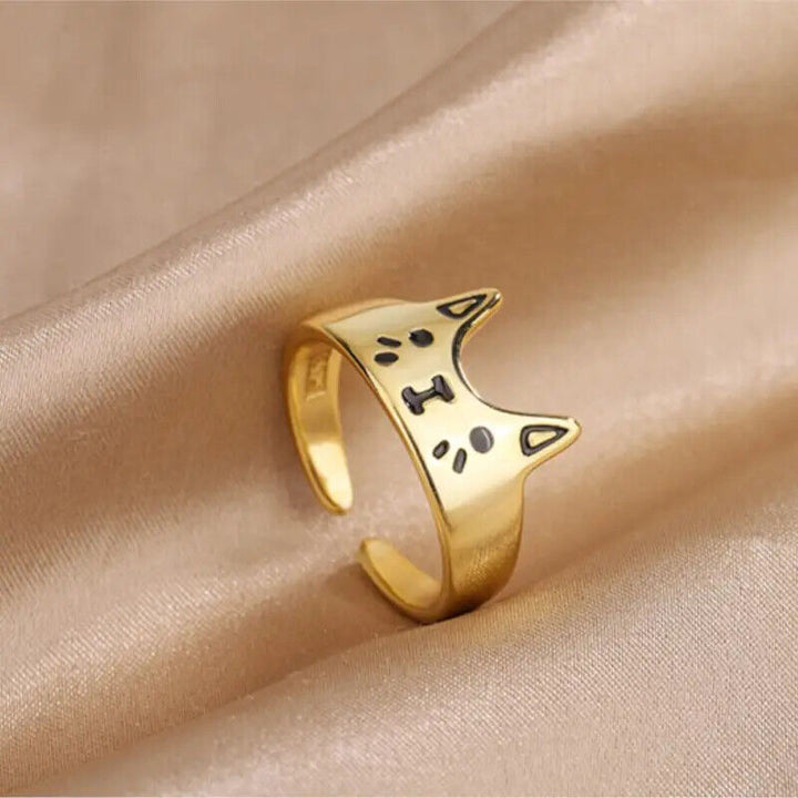 Katze Ring Sterlingsilber 925 Damenring Anpassbar für alle Größen.