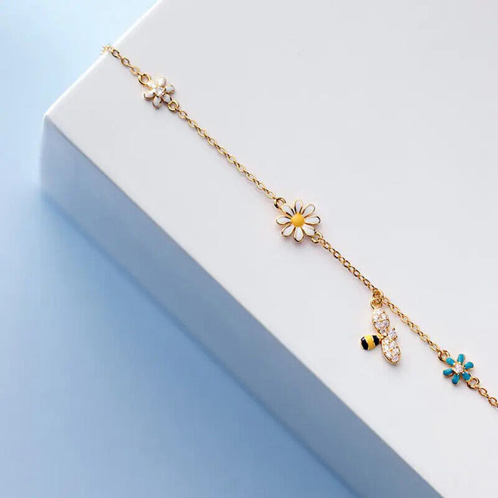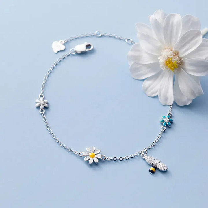 Kinder Armband Blumen Sterling Silber 925 Zirkonia Armkette 13,5 +2,5 cm