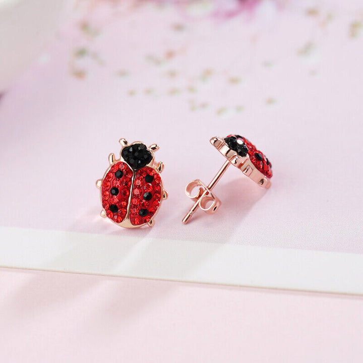 Kinder Ohrringe Marienkäfer 🐞 mit Zirkonia Glück Ohrstecker Mädchen Top 🌟