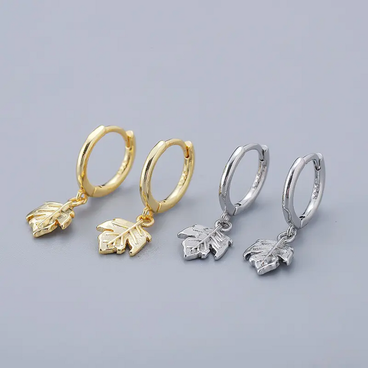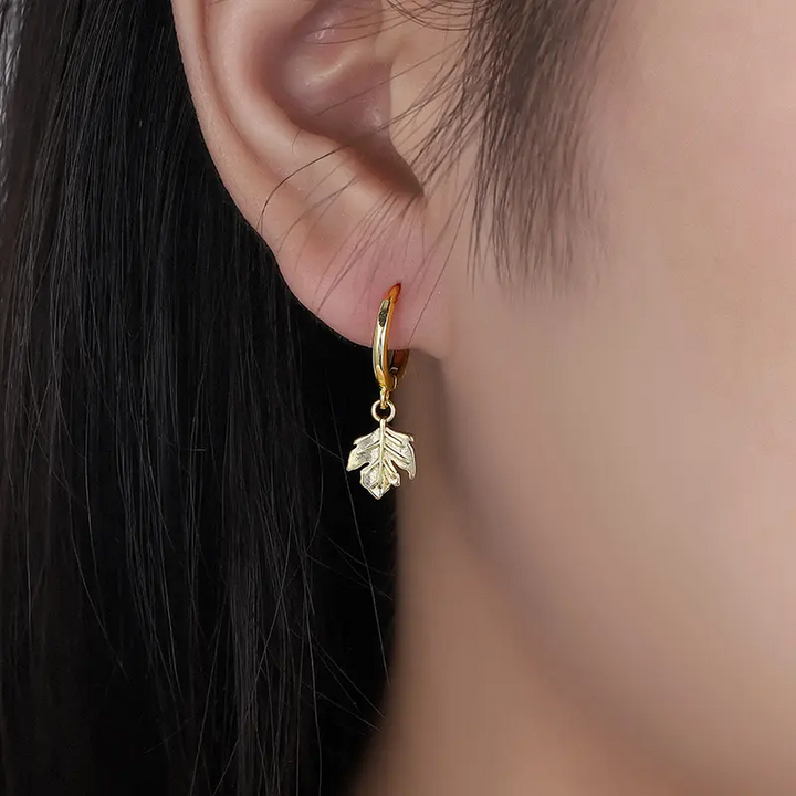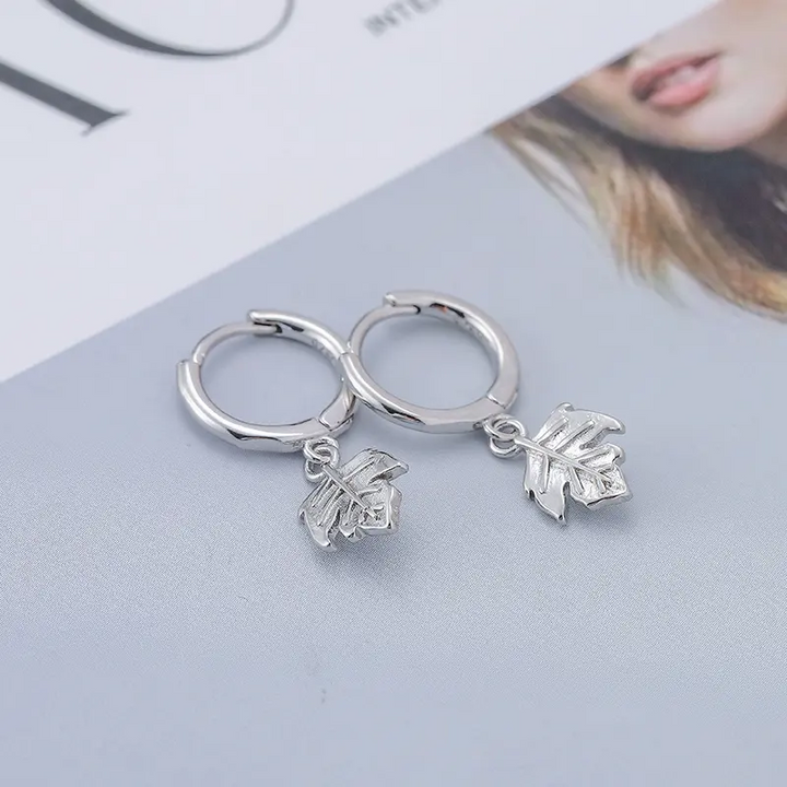Klapp Creolen Herbstblatt Sterlingsilber 925 Damen Blatt Ohrringe