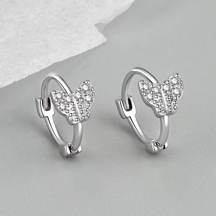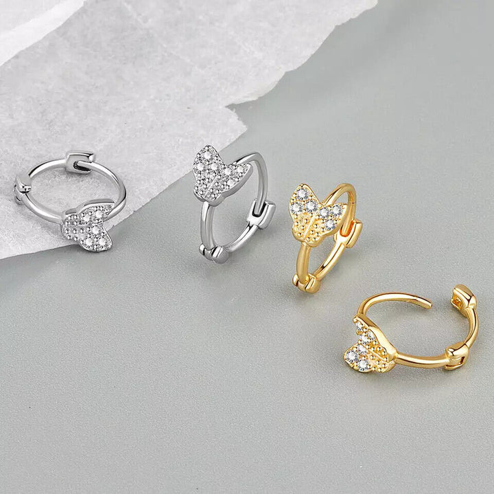 Kleine Creole Schmetterling Sterling Silber 925 Zirkonia Damen Ohrringe