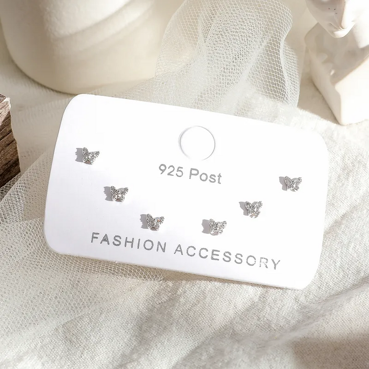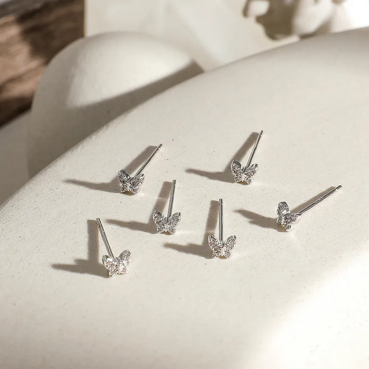 Kleine Ohrstecker mini Schmetterling Sterlingsilber 925 Damen Zirkon Ohrringe