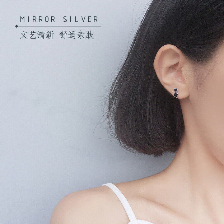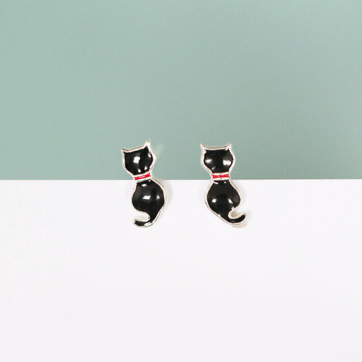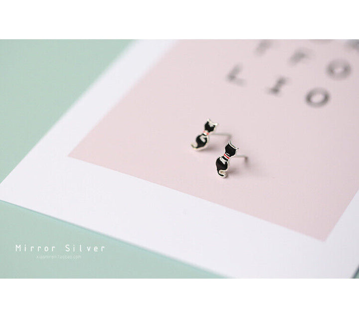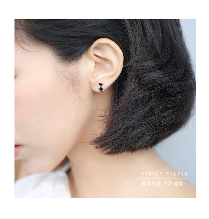 Kleine Ohrstecker Schwarz Katze Silber 925 Damen Kinder Ohrringe