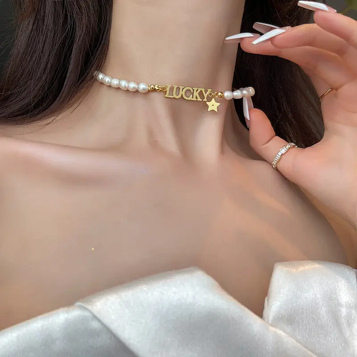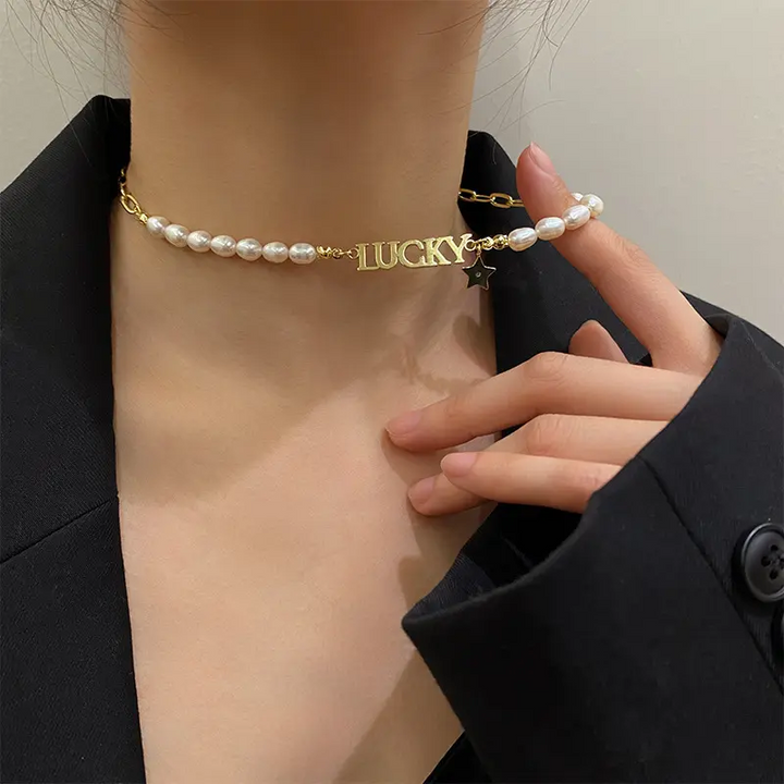 Kurze Halskette Anhänger Lucky weiße Perle Kette