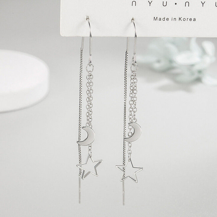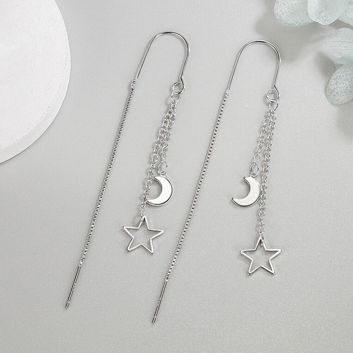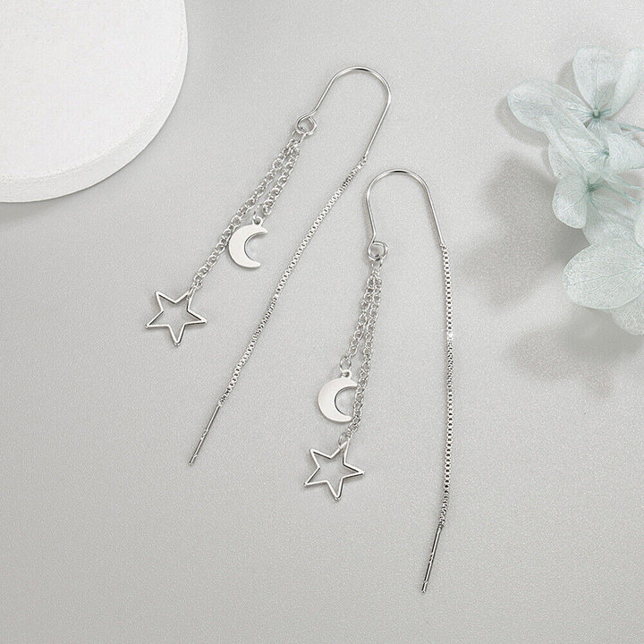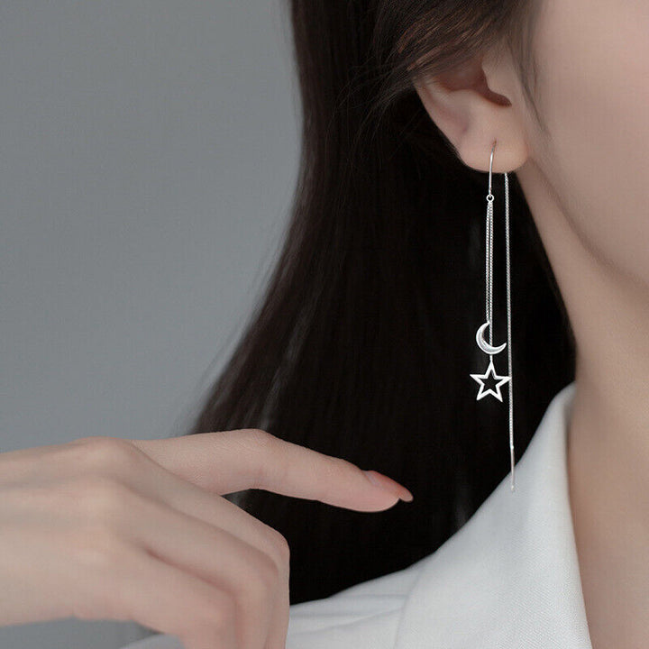 Lange Ohrhänger Stern Sterlingsilber 925 Damen Ohrringe