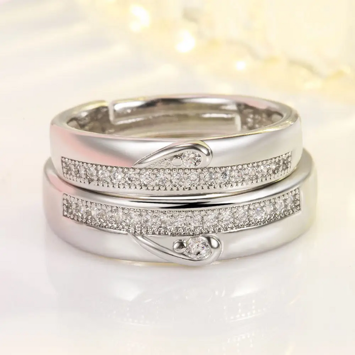 Love Herz Sterling Silber 925 Partnerringe - Herzschlag-Design Zirkonia Liebe