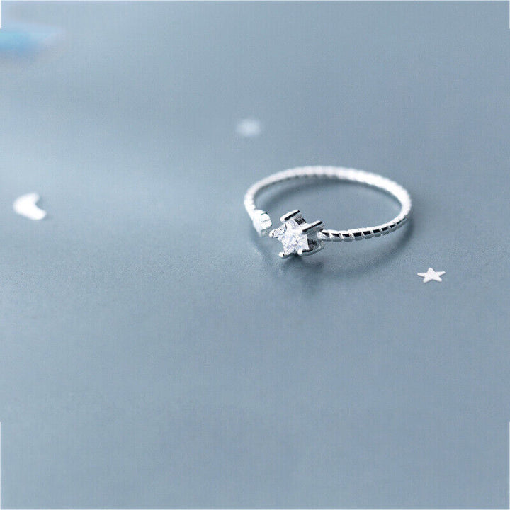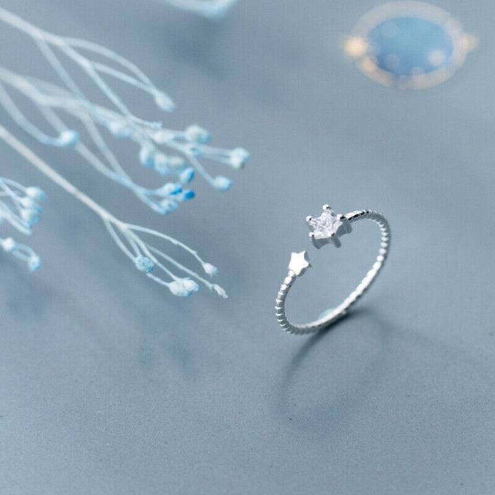 Mädchen Ring Stern Sterling Silber 925 Damen Zirkonia verstellbar 48-55