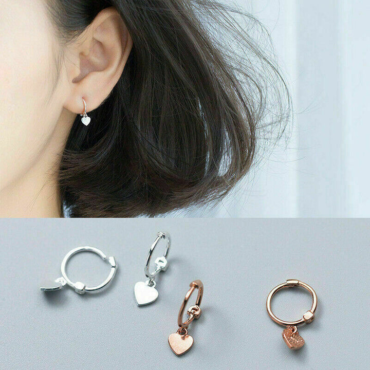 Mini Creole Sterlingsilber 925 Herz Anhänger Damen Mädchen Ohrringe