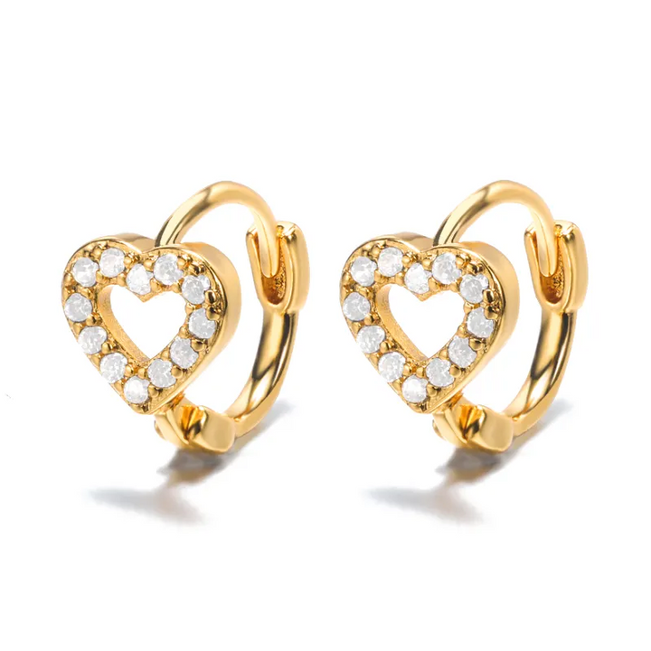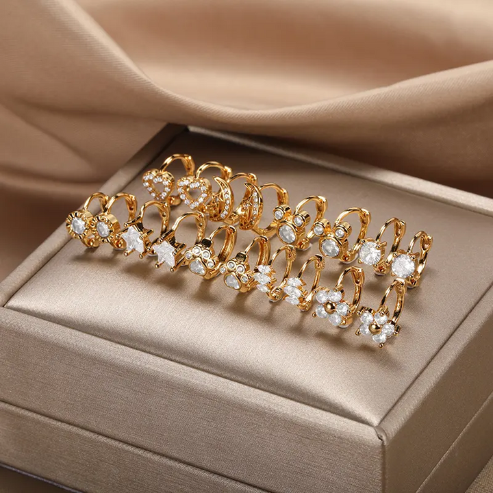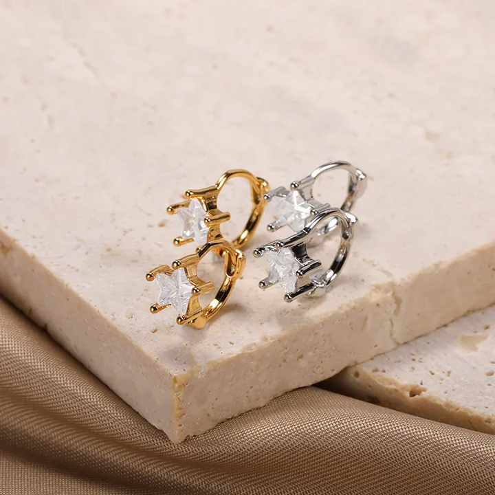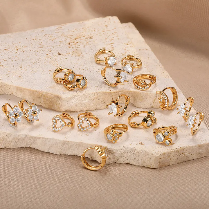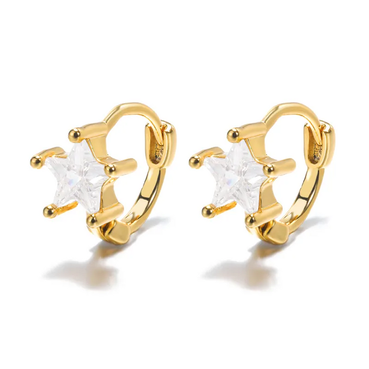Mini Creole Glänzend 18k Vergoldete Stern Herz Klappbar Damen Ohrringe