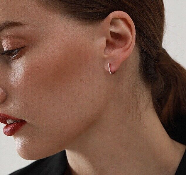 Mini Halb Creolen Ohrstecker echt Silber 925 Zirkonia Damen Ohrringe