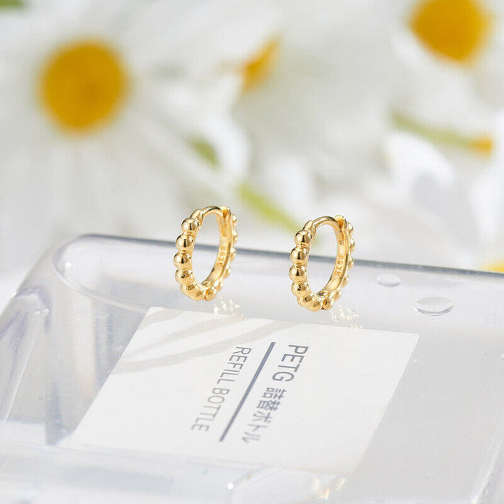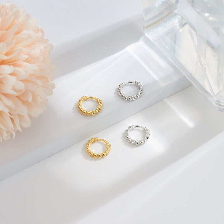 Mini Kleine Creolen Kügelchen Sterling Silber 925 Damen Rund Ohrringe