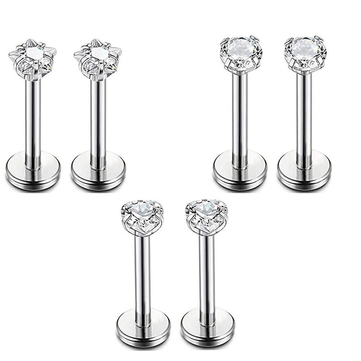 Mini Lippenpiercing 3 Set Herz&Stern&Rund Zirkonia Piercing Lippen Labret
