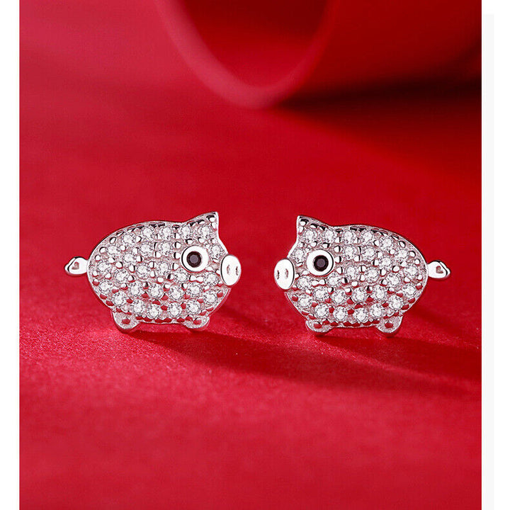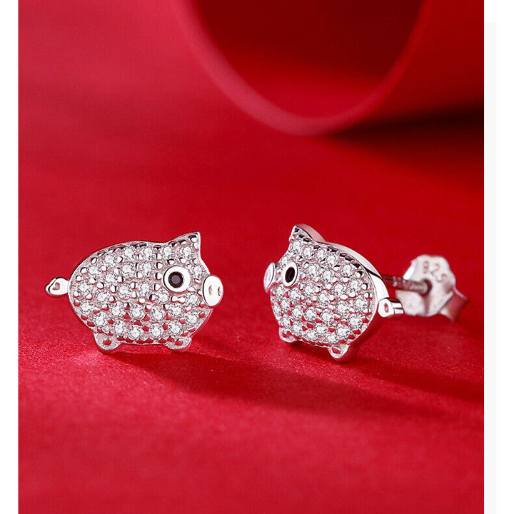 Mini Ohrstecker Schwein Silber 925 Zirkonia Damen Kinder Ohrringe