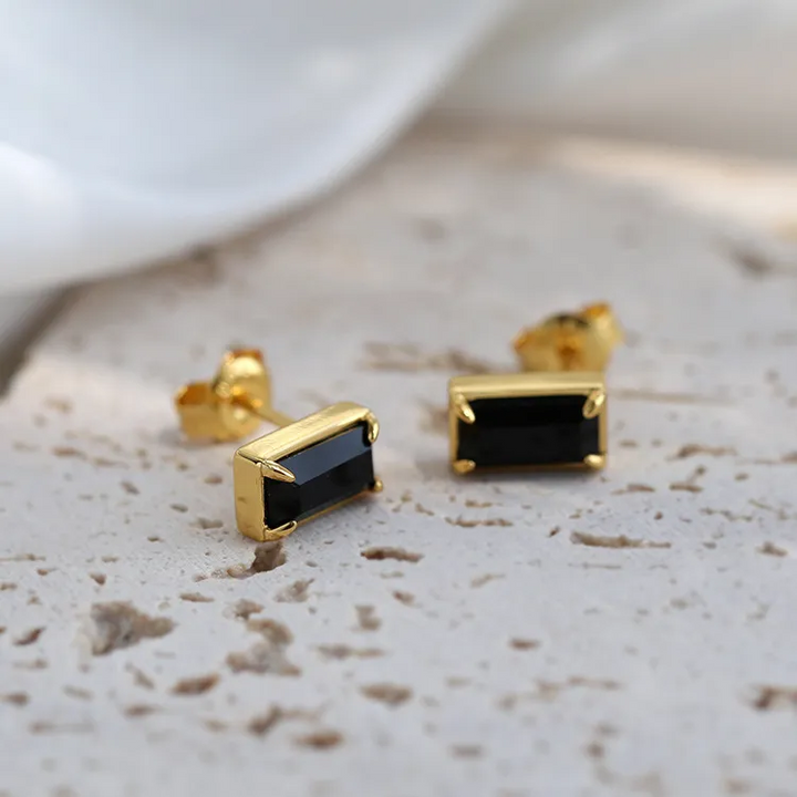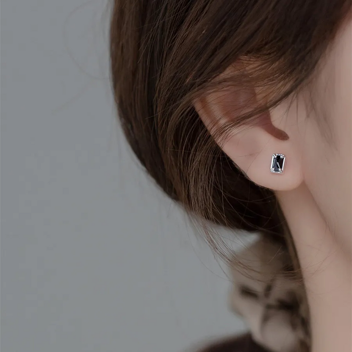 MiniOhrstecker Rechteck Sterling Silber 925 Zirkonia Schwarz Damen Ohrringe