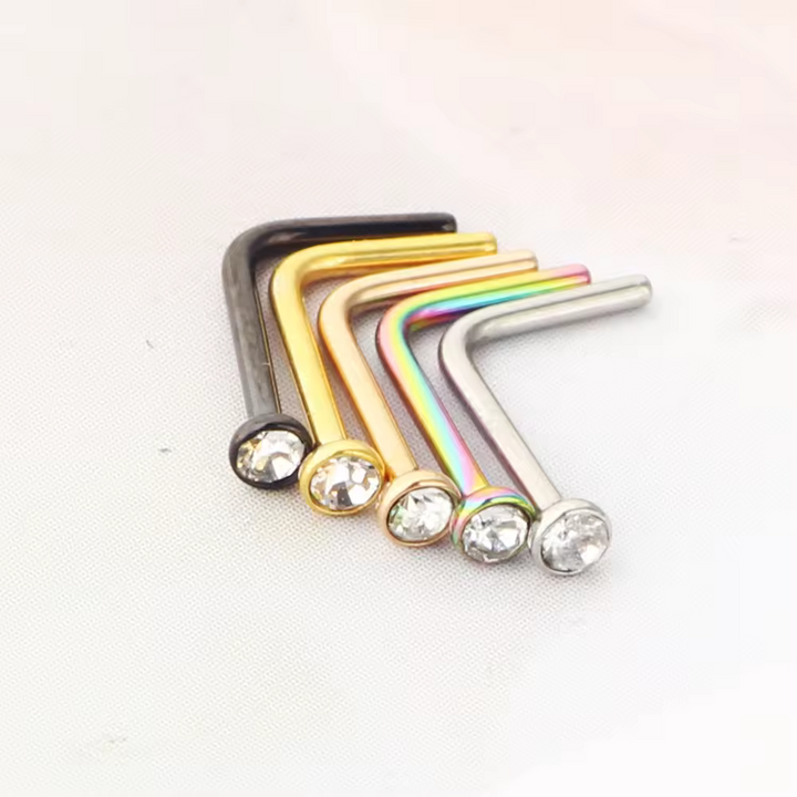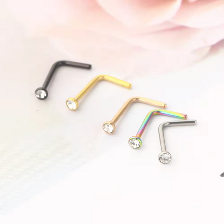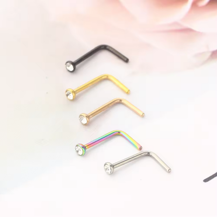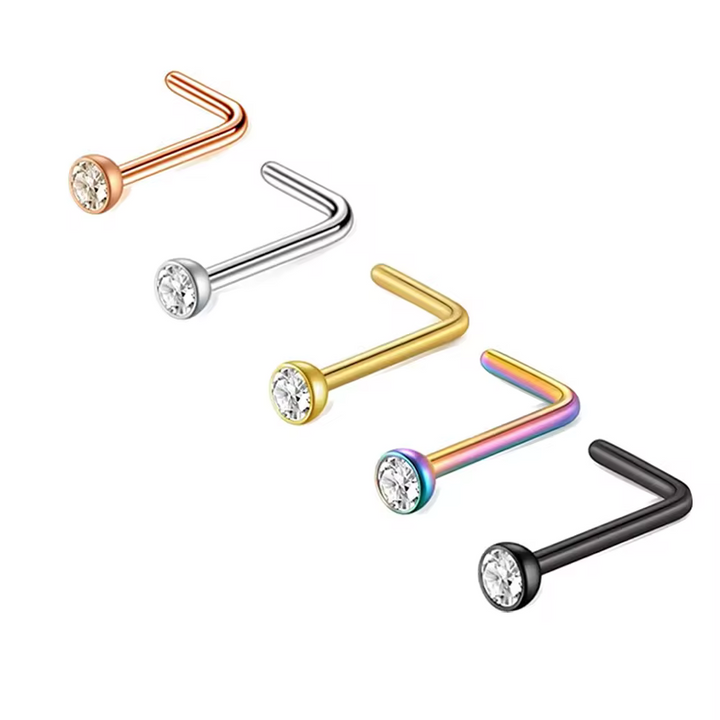 Nasenpiercing Nasenstecker Nasenring Rund mit Zirkonia Motiv L-Form 5 St / Set