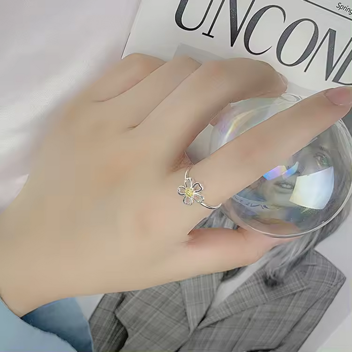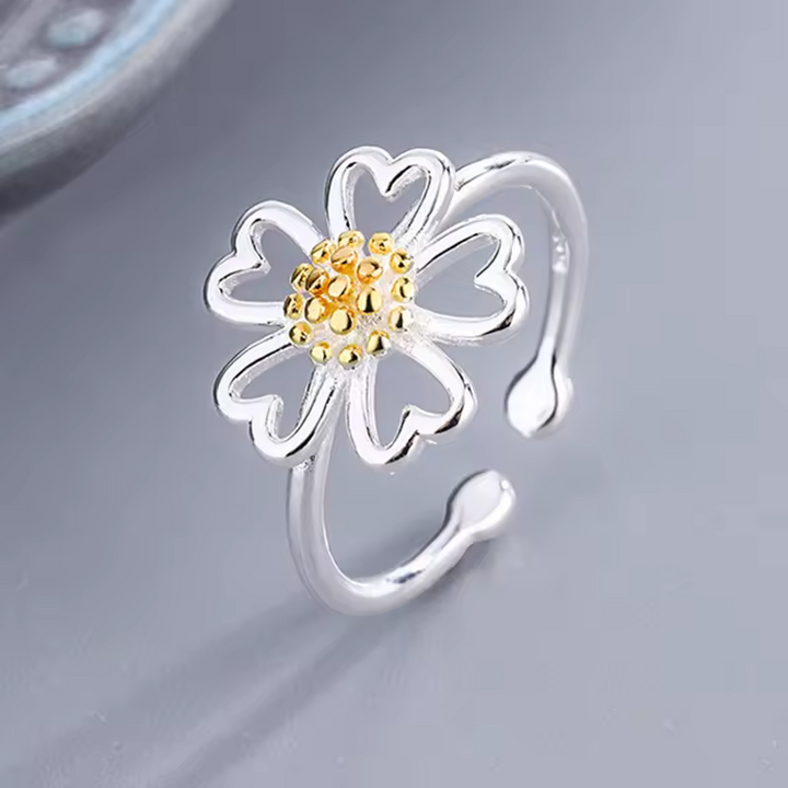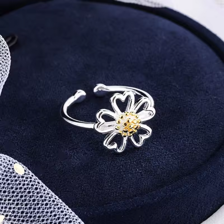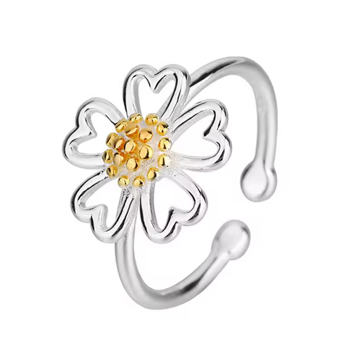 Offener Blumen-Damenring, Sterling Silber 925, glatt Golden Blüte, Größe wählbar