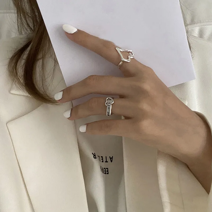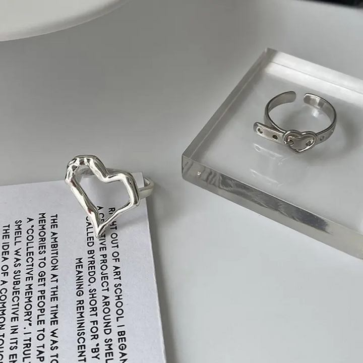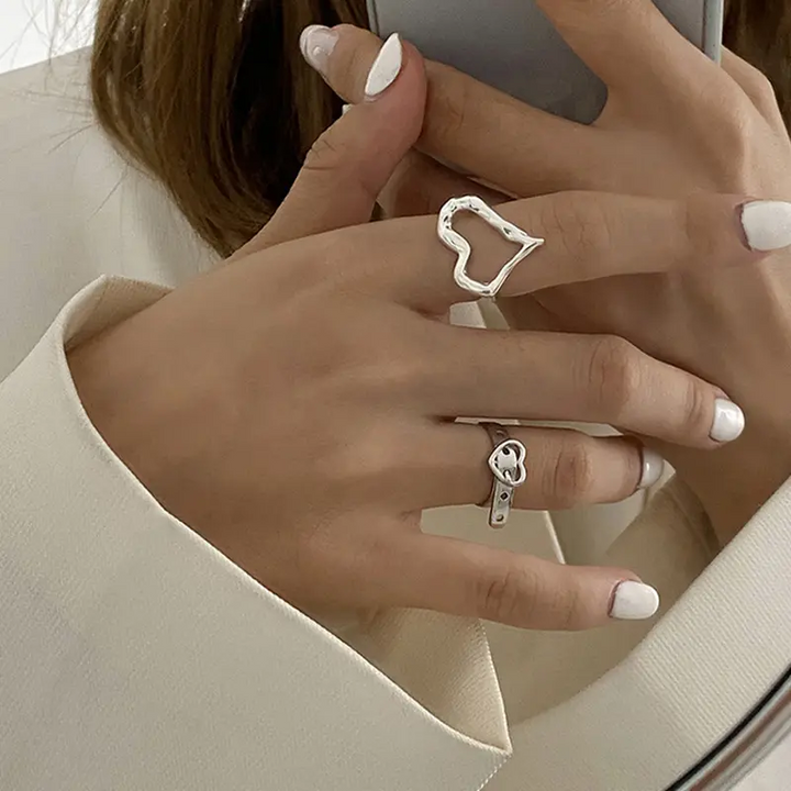 Offener Herzring, verstellbare Größe, für Damen und Mädchen Gold-Silber