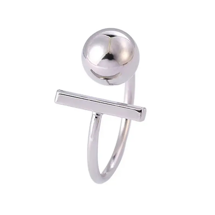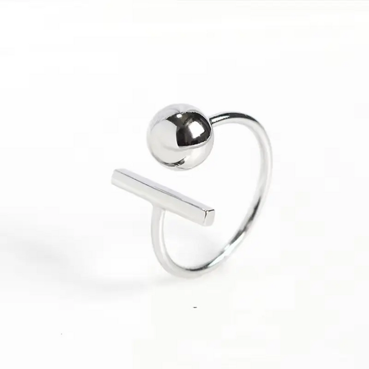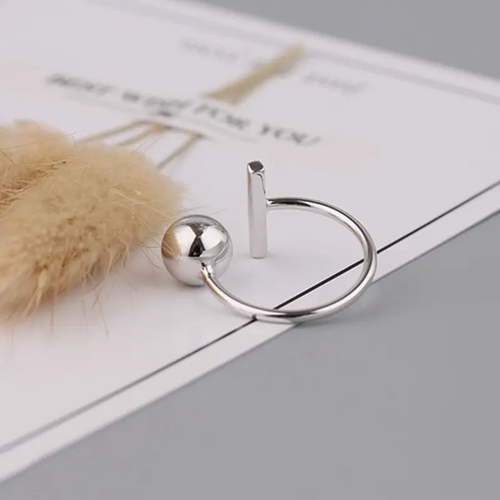 Offener Ring 925er Silber mit Kugel- und Stab-Element – Verstellbares Design
