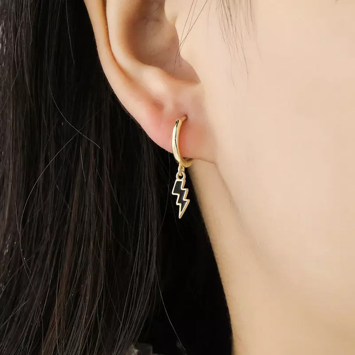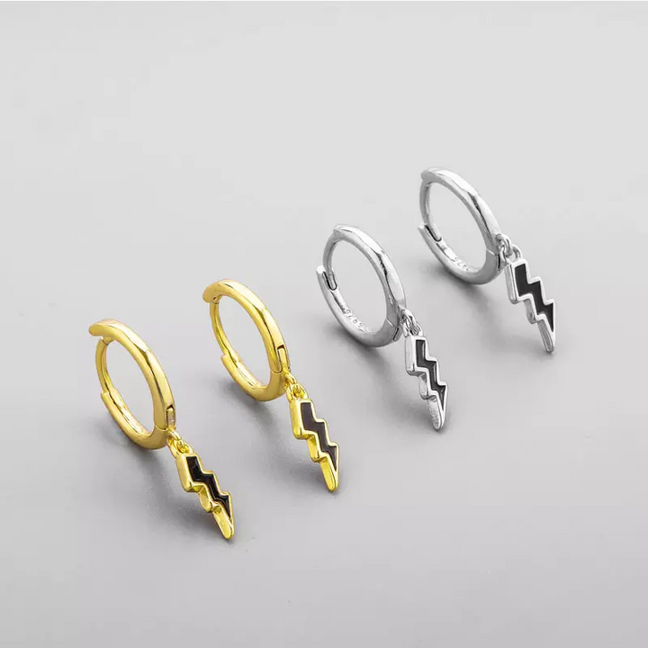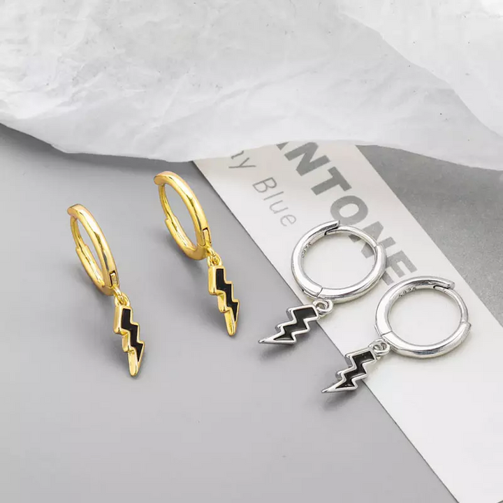 Ohrhänger Creole Blitz Sterling Silber 925 Gemeißelt Power Damen Ohrring