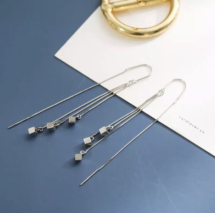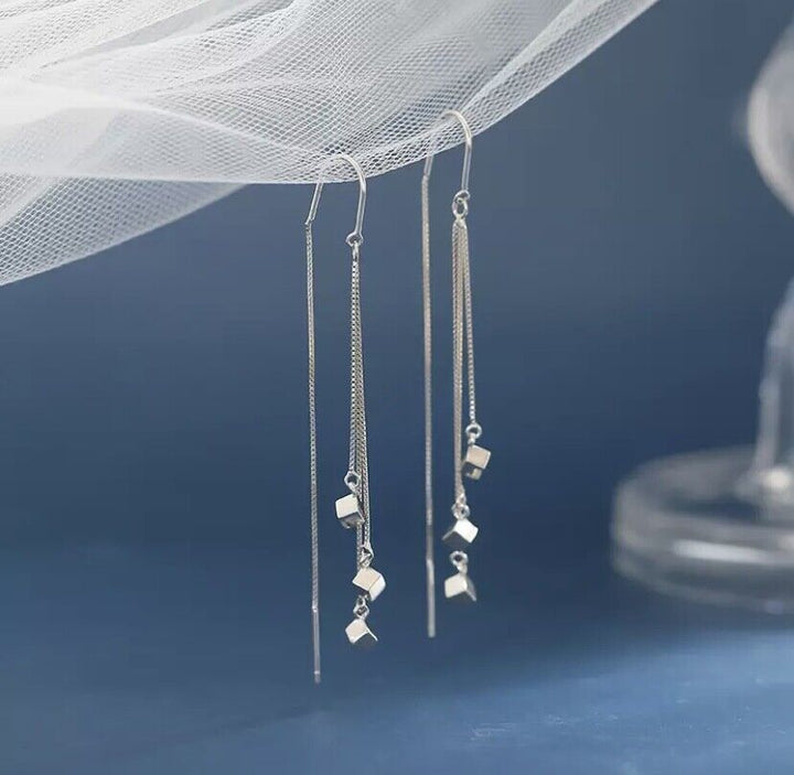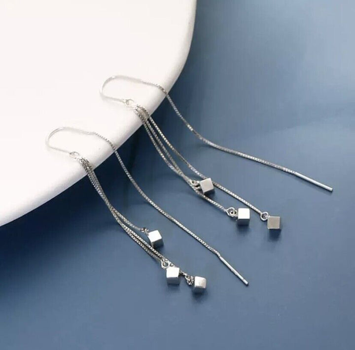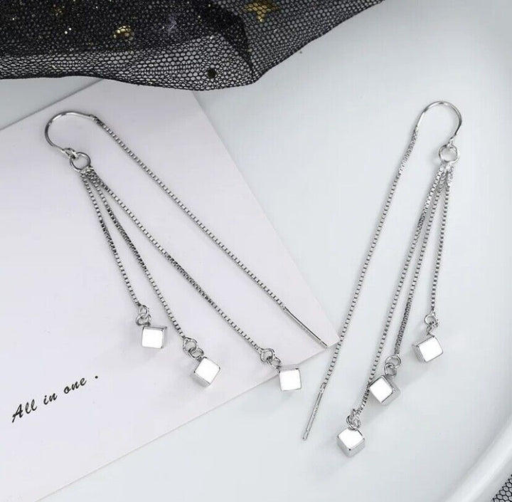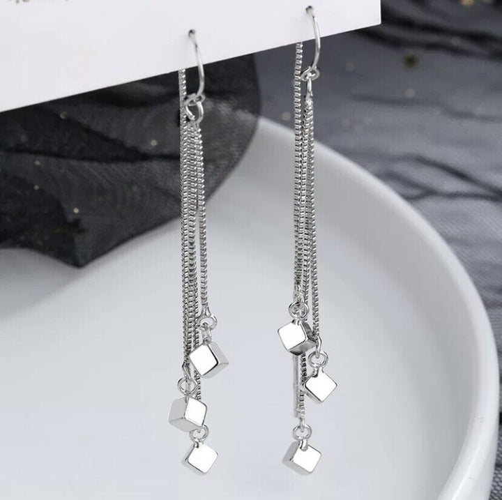 Ohrhänger Kreole Lange Quadrat Sterlingsilber 925 Damen Ohrringe