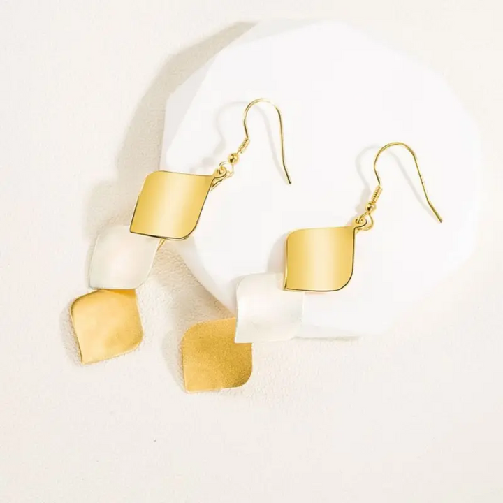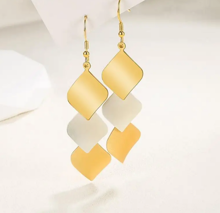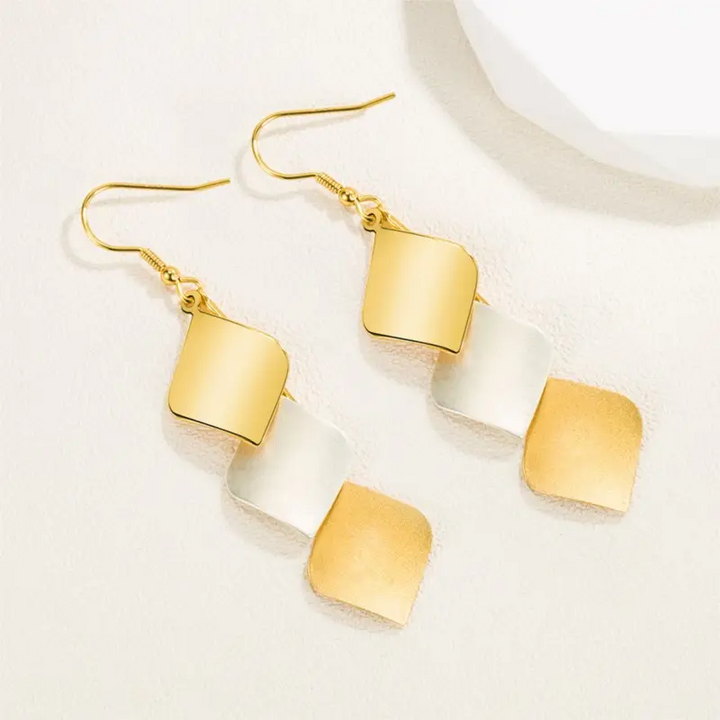 Ohrhänger Raute Silber 925 gebogene Vier Damen Ohrringe silber-Gold