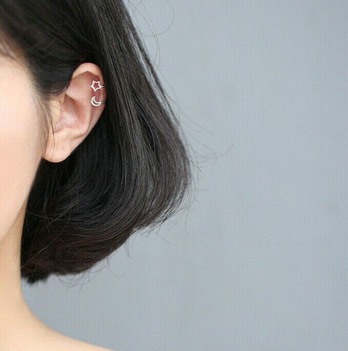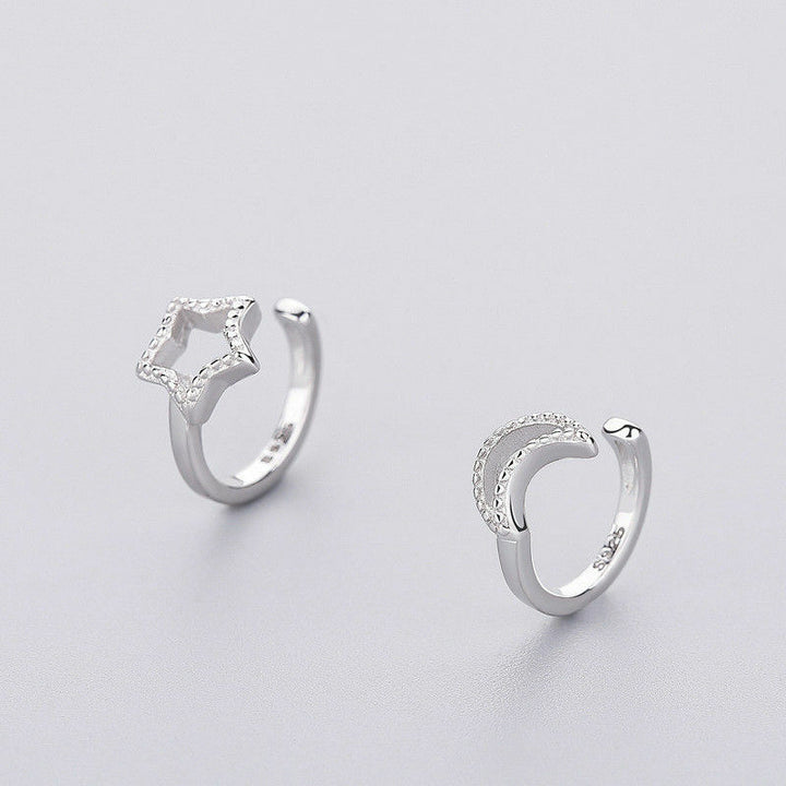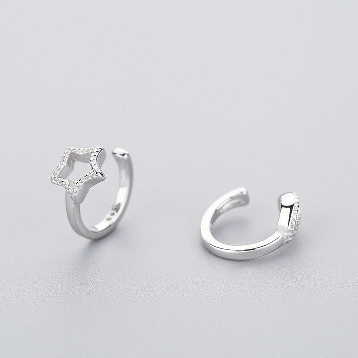 Ohrklemme 2 Stück Silber 925 Stern & Mond Damen Ohrringe