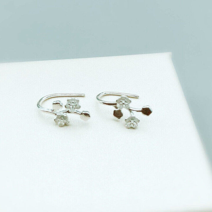 Ohrklemme Blätter Blumen Silber 925 Damen 1 Stück Ohrring ohne Loch
