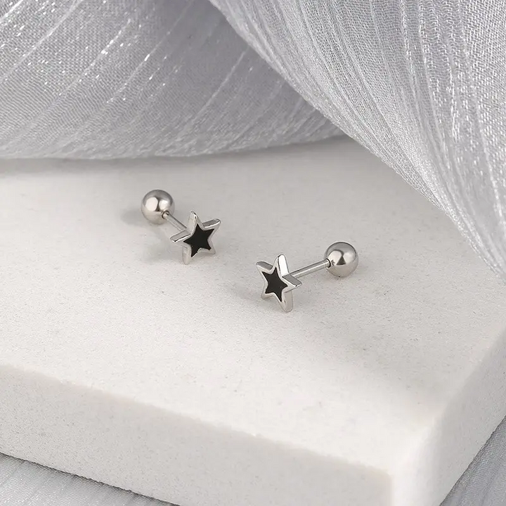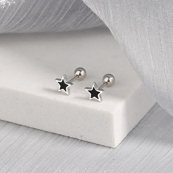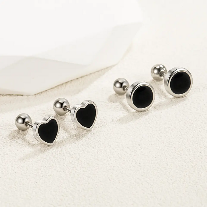 Ohrring Paar Sterlingsilber 925 Erstohrstecker Herz-Stern-Rund Schraubverschluß