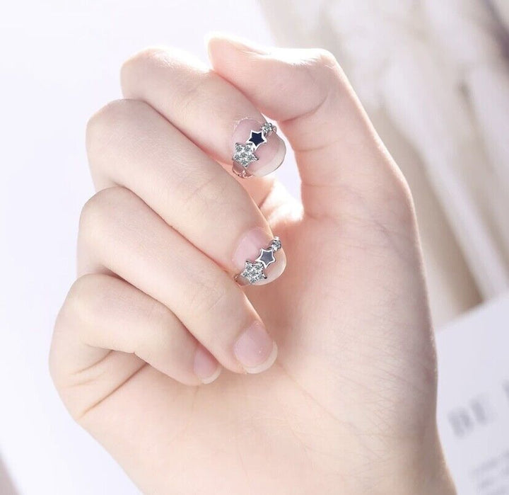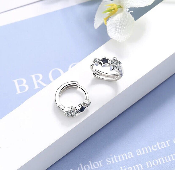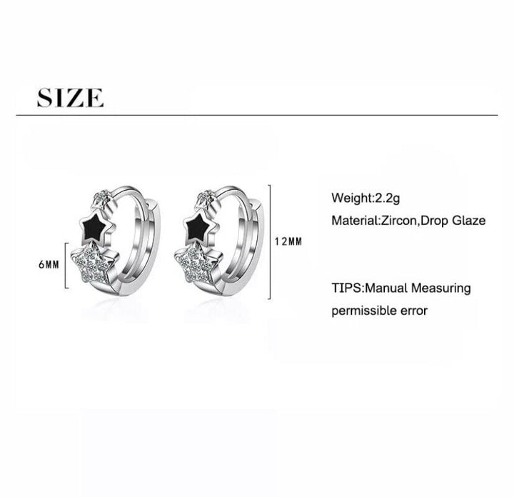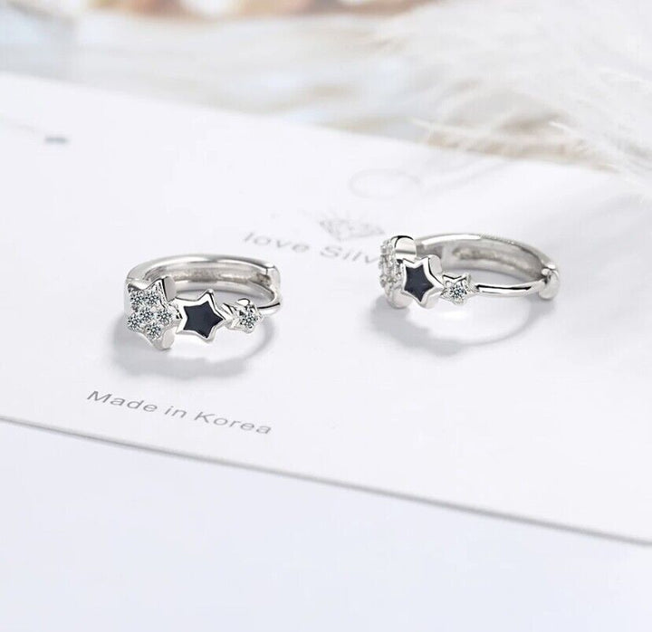 Ohrringe Creolen Zirkonia Stern Silber 925 Damen Schwarz Stern