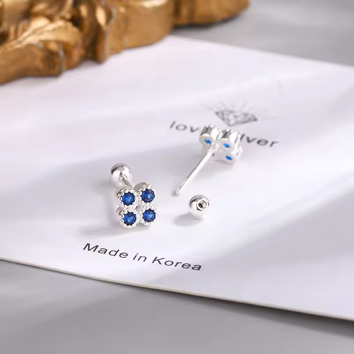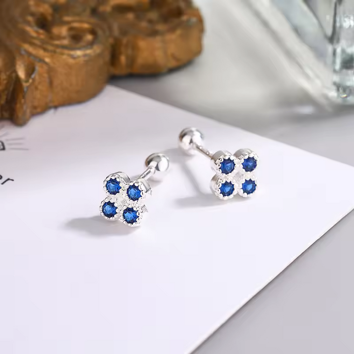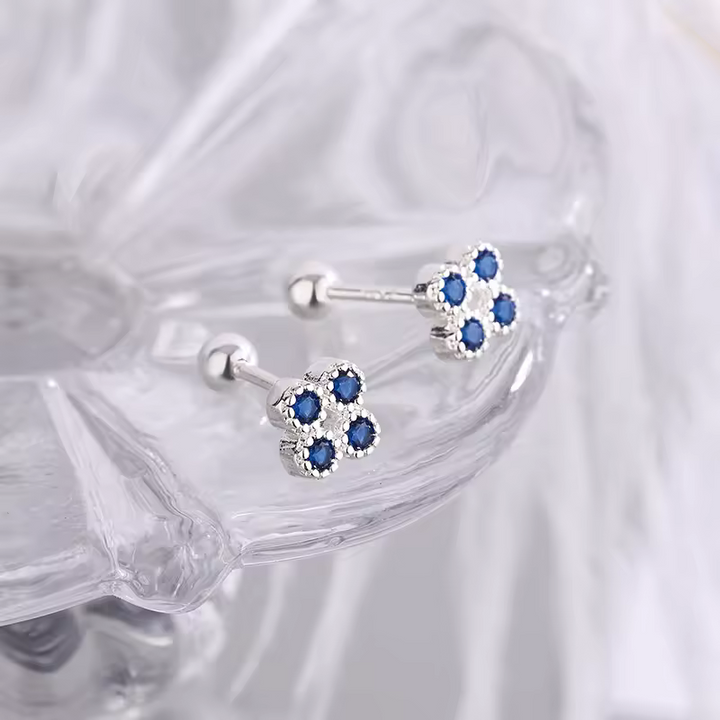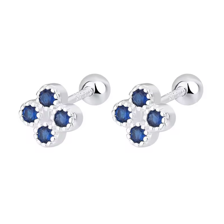 Ohrringe kleiner Blume, Silber 925, blaue Zirkonia, ohrringe m. Schraubenvers
