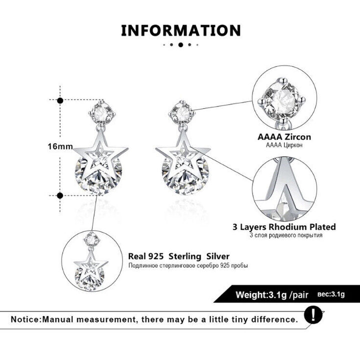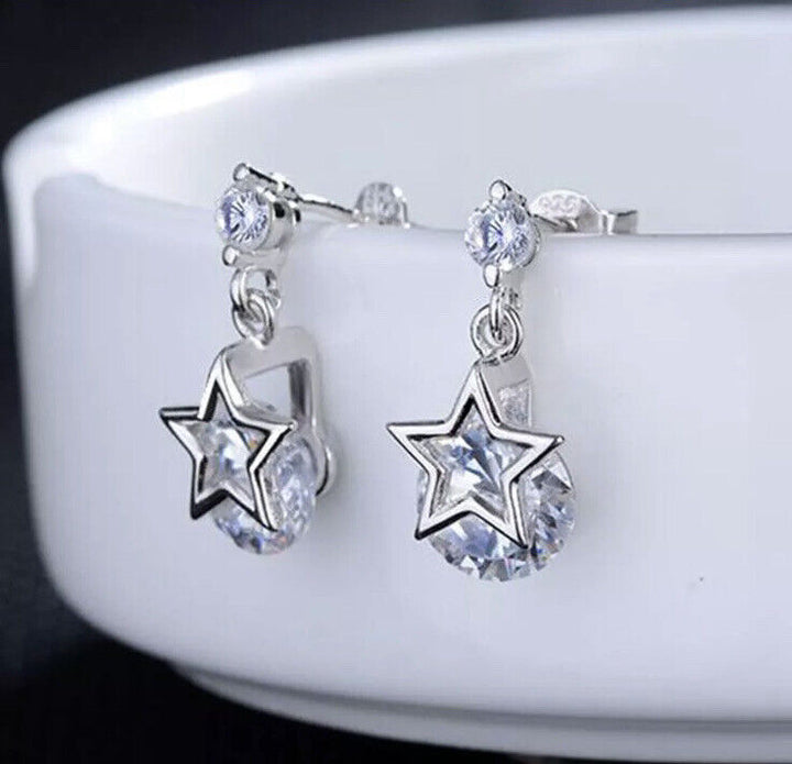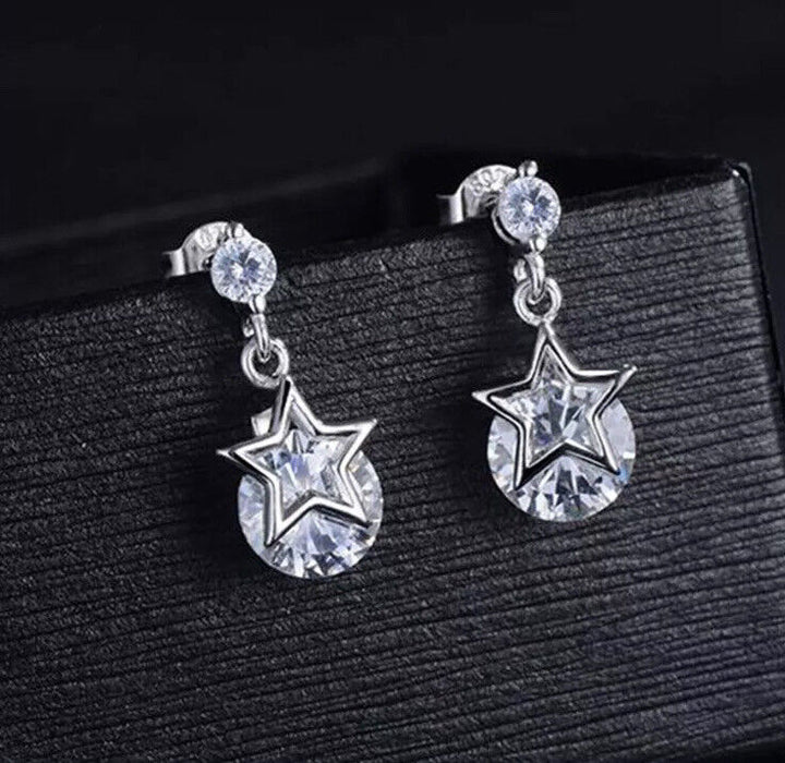 Ohrringe mit Anhänger Stern Silber 925 Zirkon Damen Ohrringe