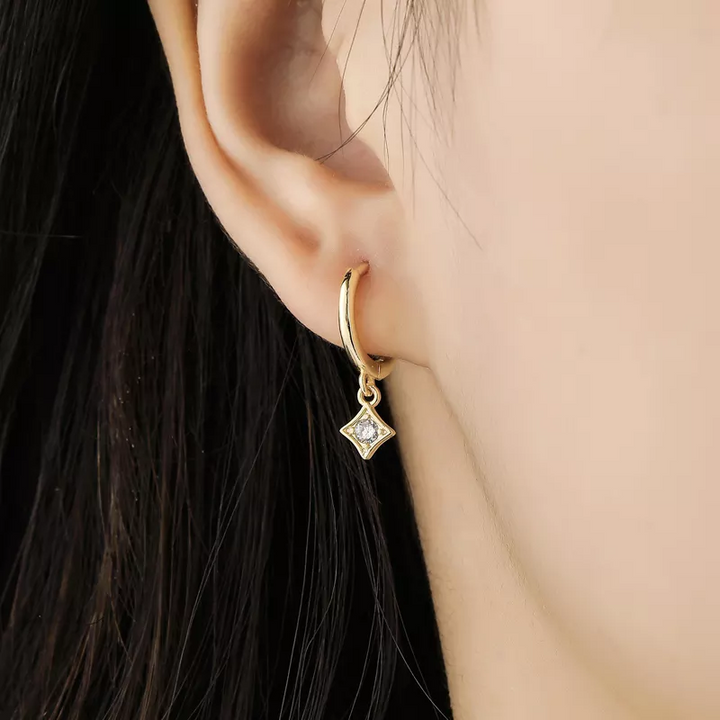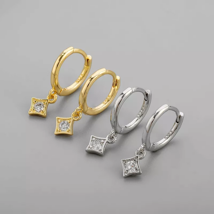 Ohrringe mit quadratischem Anhänger Silber 925 Zirkonia Damen Creole