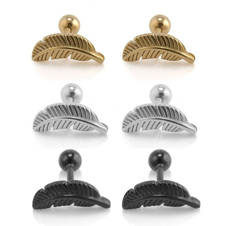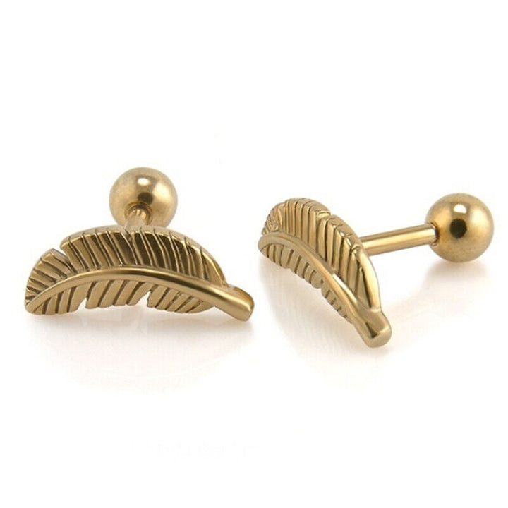 Ohrringe mit Schraubverschluss Kugel Blatt Edelstahl 316L Damen Ohrstecker